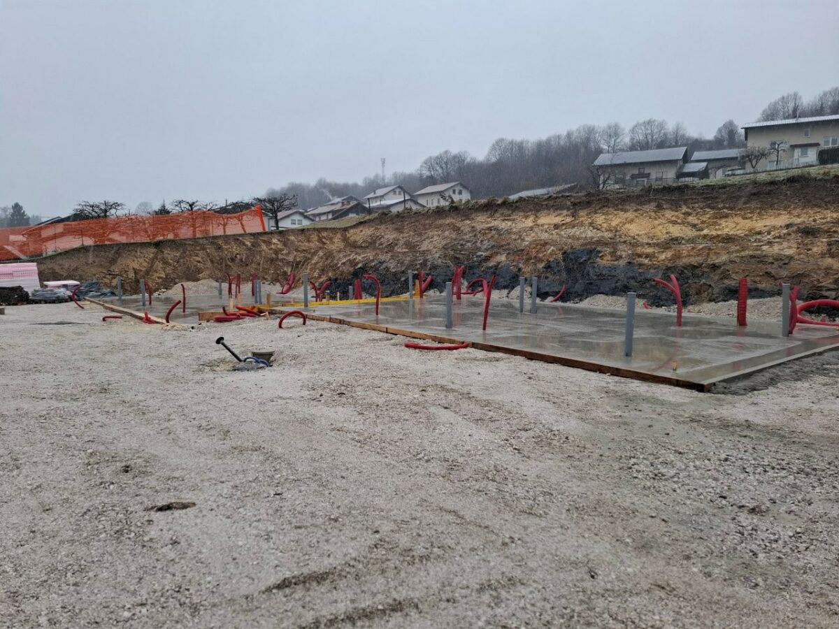 Izdelavi tampona in kanalizacije sledi podložni beton za temeljni plošči objektov.